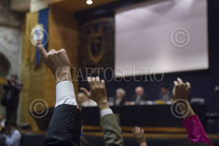 MÉXICO, D.F., 18SEPTIEMBRE 2015.- Votación de la sesión del Consejo Universitario de la UNAM, celebrado en el Antiguo Colegio de Medicina. Los consejeros designaron a Maité Ezcurdia Olavarrieta como nueva integrante de la Junta de Gobierno de la Máxima Casa de Estudios, en sustitución de Eduardo Antonio Chávez, quien por el límite de edad (70 años) dejó la designación. La nueva integrante completa los 15 notables que conforman la instancia encargada de la designación del nuevo rector para el cuatrienio 2015-2019. FOTO: MOISÉS PABLO /CUARTOSCURO.COM