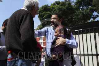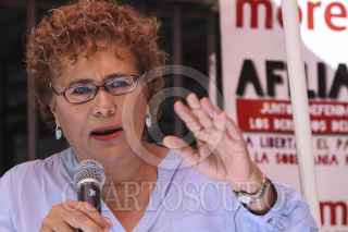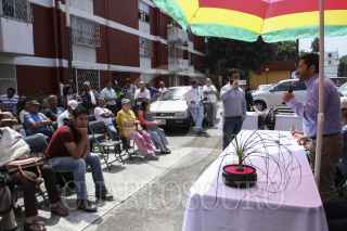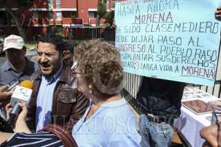 MÉXICO, D.F., 20SEPTIEMBRE2015.- Martí Batres, presidente nacional de Morena acompañado de Bertha Lujan, candidata a jefa delegacional en Coyoacan, Arnulfo Trejo, representante de Morena en Coyoacan y Rocio Mejia, militante del partido, se presentaron en una unidad habitacional en la delegación Coyoacan para dar a conocer un contrainforme presidencial. FOTO: ISABEL MATEOS /CUARTOSCURO.COM