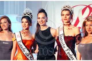 Itzamani Bermudez, Rebeca Jones y Danette Velasco al término de la presentación del concurso de nuestra Belleza D.F. FOTO: Germán Romero/CUARTOSCURO.