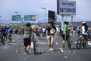 MÉXICO, D.F., 20SEPTIEMBRE2015.- El paseo Muévete en Bici se habilitó en una ruta de 10 kilómetros sobre el Segundo Piso del Anillo Periférico a la que asistieron 8,151 personas, para conmemorar el Día Mundial sin Auto que se celebra alrededor del mundo cada 22 de septiembre. FOTO: CUARTOSCURO.COM