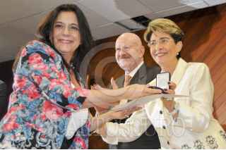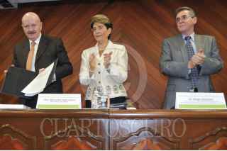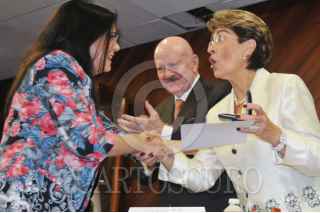 MÉXICO, D.F., 21SEPTIEMBRE2015.- Manuel Mondragón y Kalb, titular de la CONADIC y Mercedes Juan López, titular de la Secretaria de Salud, durante la firma del convenio para el inicio de los trabajos de la Encuesta Nacional de Adicciones, al termino de la firma fue galardonada Mirta Molinari por el trabajo realizado contra las adicciones contra el tabaco. FOTO: SAÚL LÓPEZ /CUARTOSCURO.COM