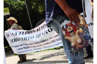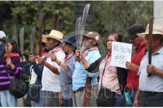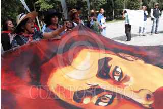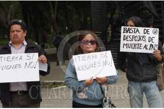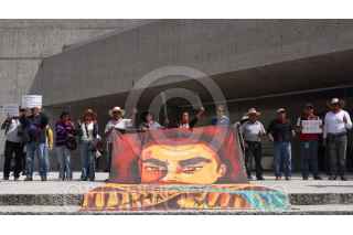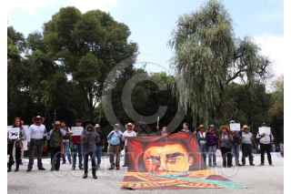 MÉXICO, D.F., 22SEPTIEMBRE2015.- Habitantes de San Salvador Atenco, Estado de México, y padres de familia de los estudiantes desaparecidos de Ayotzinapa, Guerrero, protestaron frente al Museo Rufino Tamayo mientras transcurría adentro el "Foro Internacional La Gran Transformación Urbana. aeropuerto y Ciudad". Expresaron su inconformidad con respecto a la construcción del nuevo aeropuerto de la Ciudad de México en Texcoco. FOTO: MARÍA JOSÉ MARTÍNEZ /CUARTOSCURO.COM