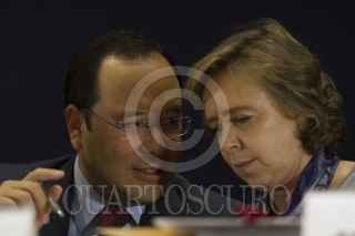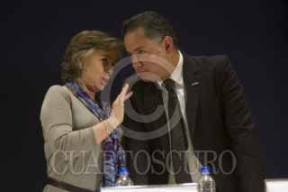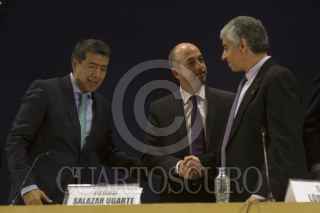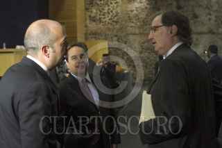 MÉXICO, D.F., 22SEPTIEMBRE2015.- Pedro Salazar Ugarte, director del Instituto de Investigaciones Jurídicas conversa con José Woldenberg, ex consejero del IFE, durante su participación en el seminario internacional "Evaluación de las elecciones 2015 y la Reforma Electoral 2014: diagnóstico y propuestas", que se realizó en la Antigua Escuela de Medicina. FOTO: MOISÉS PABLO /CUARTOSCURO.COM