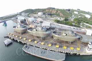 SALINA CRUZ, OAXACA, 22SEPTIEMBRE2015.- En el Astillero Número 20 de la Secretaría de Marina-Armada de México se llevó a cabo la botadura de tres remolcadores cicloidales de 50 toneladas, mismos que empezaron a construirse a principios de este año en citadas instalaciones navales como parte del programa de renovación de la flota menor de Pemex. Estos son los tres primeros remolcadores de nueve que serán entregados en el marco del acuerdo firmado entre esta Institución y Petróleos Mexicanos para la construcción de embarcaciones que comprenden remolcadores, barcazas, chalanes, embarcaciones multipropósito especializadas y buques tanque de bajo calado. FOTO: SEMAR /CUARTOSCURO.COM
