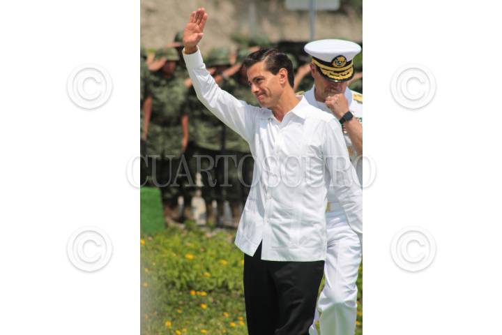 JOJUTLA, MORELOS, 22SEPTIEMBRE2015.- El presidente Enrique Peña Nieto, el gobernador de Morelos, Graco Ramírez, el secretario de Gobernación, Miguel Ángel Osorio Chong; el secretario de la Defensa Nacional, general Salvador Cienfuegos Zepeda y el secretario de la Marina Armada de México, almirante Francisco Vidal Soberón Sanz encabezaron la ceremonia de inauguración de la Base Militar "Los Lagartos" y el 108 Batallón de infantería en el poblado de Tehuixtla. FOTO: PATRICIA MORALES /CUARTOSCURO.COM