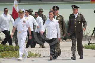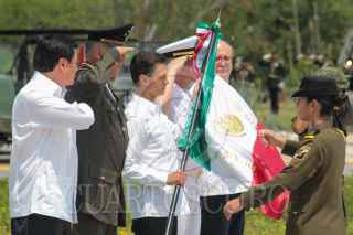JOJUTLA, MORELOS, 22SEPTIEMBRE2015.- El presidente Enrique Peña Nieto, el gobernador de Morelos, Graco Ramírez, el secretario de Gobernación, Miguel Ángel Osorio Chong; el secretario de la Defensa Nacional, general Salvador Cienfuegos Zepeda y el secretario de la Marina Armada de México, almirante Francisco Vidal Soberón Sanz encabezaron la ceremonia de inauguración de la Base Militar "Los Lagartos" y el 108 Batallón de infantería en el poblado de Tehuixtla. FOTO: PATRICIA MORALES /CUARTOSCURO.COM