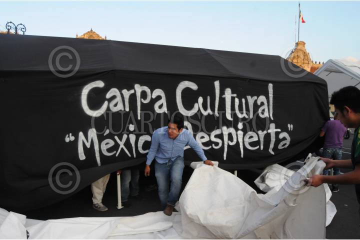 MÉXICO D.F. 22SEPTIEMBRE2015.- Padres de los normalistas de Ayotzinapa desaparecidos en el municipio de Iguala iniciaron a las 17:00 horas el ayuno que realizaran por más de 43 horas en el campamento que mantienen en el zócalo de la Ciudad de México previo a la reunión que sostendrán con el presidente de la república. FOTO SAÚL LOPEZ /CUARTOSCURO.COM