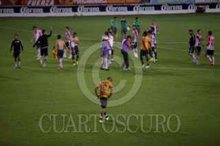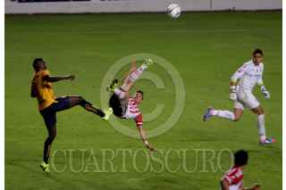 MORELIA, MICHOACÁN, 23SEPTIEMBRE2015.- Monarcas perdió contra Chivas en partido de Cuartos de Final de la Copa MX por 1-2 en el Estadio Morelos, con esto termina la participación de el equipo rojiamarillo en este torneo. En la imagen el único gol anotado por Joel Huiqui FOTO: ALAN ORTEGA / CUARTOSCURO.COM