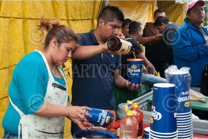 MÉXICO, D.F., 24SEPTIEMBRE2015.- Locatarios y vecinos del mercado de la Merced festejaron el 58 aniversario del lugar y a la virgen de la Merced con música de banda, cumbia y salsa, además con la preparación de mucha comida para todos los comerciantes y visitantes. Grupos de comerciantes se organizan para instalar distintos sonideros para que los cargadores y vendedores puedan pulir las improvisadas pistas de baile sobre las calles aledañas a las naves comerciales, el alcohol es algo que no puede faltar para armarse de valor. Además se organizan peleas de lucha libre donde los niños son quienes disfrutan más de este espectáculo. FOTO: DIEGO SIMÓN SÁNCHEZ /CUARTOSCURO.COM
