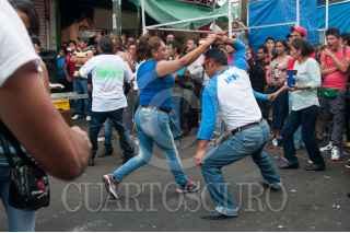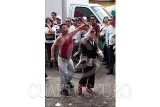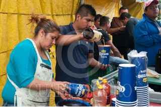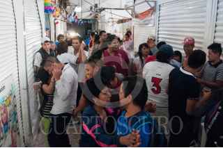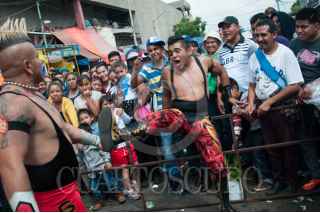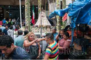 MÉXICO, D.F., 24SEPTIEMBRE2015.- Locatarios y vecinos del mercado de la Merced festejaron el 58 aniversario del lugar y a la virgen de la Merced con música de banda, cumbia y salsa, además con la preparación de mucha comida para todos los comerciantes y visitantes. Grupos de comerciantes se organizan para instalar distintos sonideros para que los cargadores y vendedores puedan pulir las improvisadas pistas de baile sobre las calles aledañas a las naves comerciales, el alcohol es algo que no puede faltar para armarse de valor. Además se organizan peleas de lucha libre donde los niños son quienes disfrutan más de este espectáculo. FOTO: DIEGO SIMÓN SÁNCHEZ /CUARTOSCURO.COM