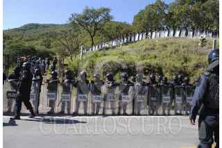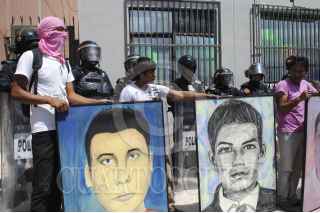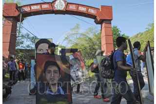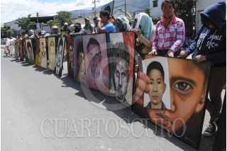 TIXTLA, GUERERRO, 24SEPTIMEBRE2015.- Normalistas de Ayotzinapa, marcharon del plantel Raúl Isidro Brugos a Chilpancingo. Al llegar al congreso realizarón un mitin y colocaron pinturas de los 43 estudiantes desaparecidos, despues de que durantes 4 días policías del estado les impedieron el paso, en esta ocasión pasaron en marcha sin ningún contra tiempo. FOTO: JOSÉ I. HERNÁNDEZ /CUARTOSCURO.COM