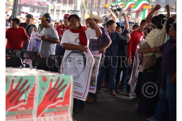 MÉXICO, D.F., 24SEPTIEMBRE2015.- Familiares de los 43 estudiantes normalistas desaparecidos el 26 de septiembre en Iguala Guerrero, realizaron una conferencia en el Platón 43x43, después de su reunión con el presidente de México, Enrique Peña Nieto. Los padres informaron que el ejecutivo no se comprometió a nada y convocan a la sociedad a manifestarse el próximo 26 de septiembre, día en el que se cumple el primer aniversario del ataque y la desaparición. FOTO: ADOLFO VLADIMIR /CUARTOSCURO.COM