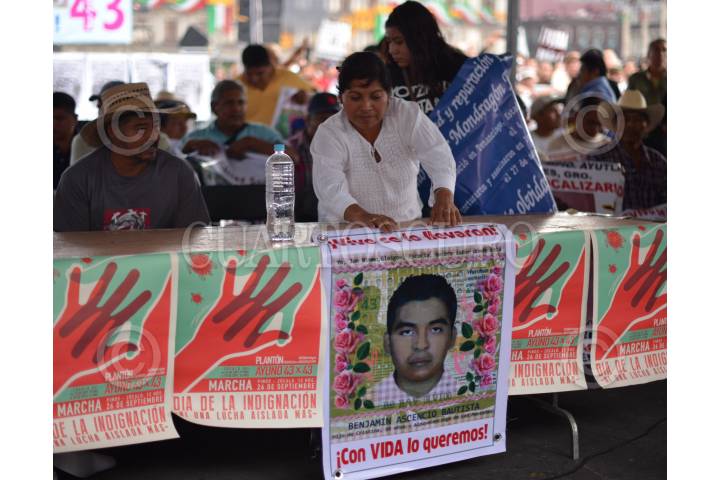 MÉXICO, D.F., 24SEPTIEMBRE2015.- Familiares de los 43 estudiantes normalistas desaparecidos el 26 de septiembre en Iguala Guerrero, realizaron una conferencia en el Platón 43x43, después de su reunión con el presidente de México, Enrique Peña Nieto. Los padres informaron que el ejecutivo no se comprometió a nada y convocan a la sociedad a manifestarse el próximo 26 de septiembre, día en el que se cumple el primer aniversario del ataque y la desaparición. FOTO: ADOLFO VLADIMIR /CUARTOSCURO.COM