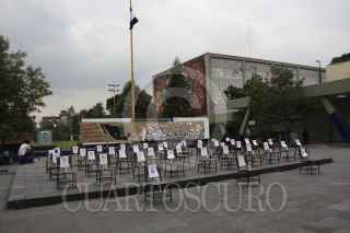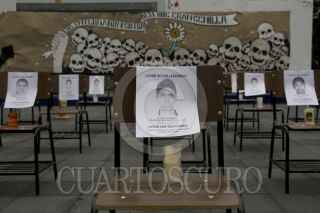 MÉXICO, D.F., 25SEPTIEMBRE2015.- Jóvenes estudiantes de la Escuela Nacional Preparatoria #8 Miguel E. Shulz realizaron un homenaje a casi un año de la desaparición de los 43 normalistas de Ayotzinapa en Iguala Guerrero. FOTO: ADRIANA ÁLVAREZ /CUARTOSCURO.COM