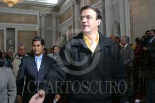 MEXICO, D.F. 04JUNIO2006.- Marcelo Ebrard, candidato de la coalición Por el Bien de Todos a la jefatura de gobierno del D.F. , Mariana Pratts y Rosario Ibarra de Piedra se incorporan a la cadena humana en apoyo a López Obrador. FOTO: Nelly Salas/CUARTOSCURO.COM