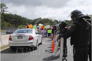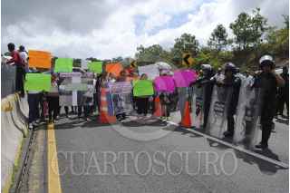 CHILPANCINGO, GUERRERO, 25SEPTIMBRE2015.- Alrededor de 300 habitantes de la comunidad El Rincón de la Vía que pertenece al municipio de Chilpancingo, bloquearon la Autopista del Sol en el punto conocido como Agua de Obispo, para protestar contra Caminos y Puentes Federales (Capufe) acusando de contaminar una presa en esa comunidad. Los inconformes denunciaron que la empresa Compañía Contratista Nacional, contratada por Capufe para reabrir el túnel de Agua de Obispo en la Autopista del Sol, durante el colapso que sufrió por el paso de los fenómenos naturales Ingrid y Manuel en 2013, arrojó escombros a una cañada de un área natural protegida, afectando una presa natural que abastece de agua a esa comunidad. FOTO JOSÉ I. HERNÁNDEZ / CUARTOSCUROCOM
