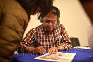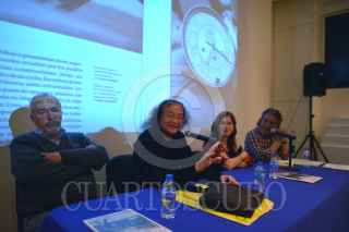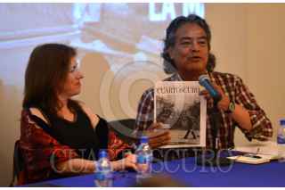 MÉXICO, D.F., 25SEPTIEMBRE2015.- Los periodistas Humberto Musaquio, Elisa Lozano, Víctor Roura y el fotoperiodista y director de la Agencia Cuartoscuro Pedro Valtierra, fueron los presentadores de la revista Cuartoscuro no. 133, realizado en el Museo de Arte Popular. Este número contiene una selección de fotografías de Pedro Valtierra sobre el sismo de 1985 ahora al cumplirse 30 años, un recuerdo del Primer Concurso de Cine Experimental y su alejamiento con el cine clásico y además, imágenes que rememoran los hechos del asalto al cuartel Madera por un grupo de jóvenes el 23 de septiembre de 1965. FOTO: ADOLFO VLADIMIR /CUARTOSCURO.COM
