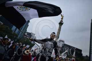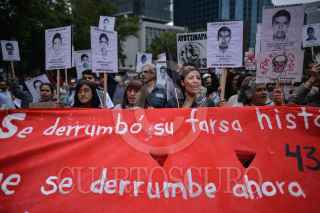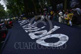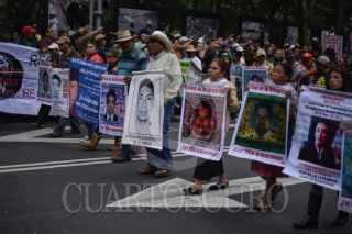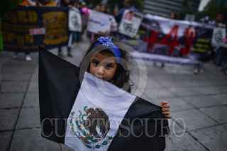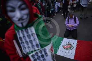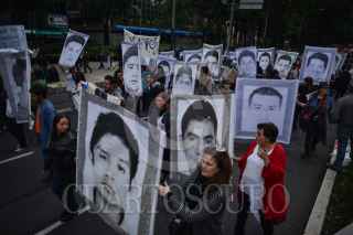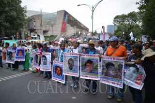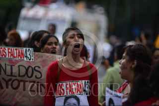 MÉXICO, D.F., 26SEPTIEMBRE2015.- Familiares de los 43 normalistas desaparecidos y 3 asesinados, acompañados de organizaciones sociales, políticas, estudiantiles y campesinas, marchan de las inmediaciones de los Pinos al Zócalo capitalino en demanda de la aparición con vida de los jóvenes y justicia para los caídos, al cumplirse un año del violento ataque el 26 de septiembre en Iguala, Guerrero. FOTO: ADOLFO VLADIMIR /CUARTOSCURO.COM