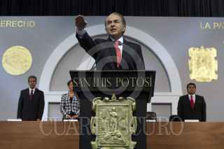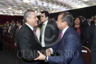 SAN LUIS POTOSí, SAN LUIS POTOSí, 26SEPTIEMBRE2015.- El líder nacional del PRI Manlio Fabio Beltrones y el coordinador de los diputados federales del partido tricolor Cesar Camacho Quiroz, asistieron a la toma de protesta de Juan Manuel Carreras López como gobernador constitucional del estado Potosí. FOTO: CUARTOSCURO.COM