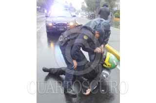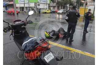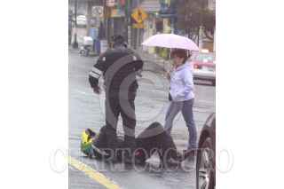 MÉXICO, D.F., 26SEPTIEMBRE2015.- Un motociclista derrapo debido a la lluvia, lesionándose el hombro izquierdo, esto en San Cosme y Cedro, colonia Santa María la Rivera. FOTO: ARMANDO MORROY /CUARTOSCURO.COM