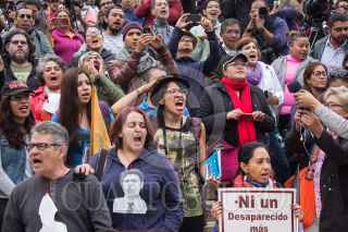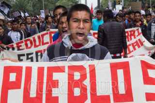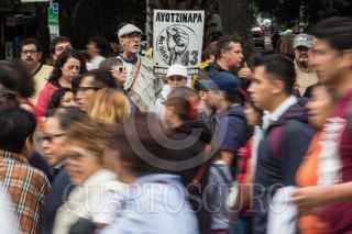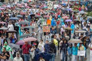 MÉXICO, D.F., 26SEPTIEMBRE2015.- Se cumple un año de la desaparición de los Normalistas de Ayotzinapa en la ciudad de Iguala, Guerrero. Una ligera lluvia acompañó por varias horas a los miles de manifestantes que acudieron al llamado de los padres de los desaparecidos, para exigir su presentación con vida mediante una mega marcha que partió alrededor del medio día del Auditorio Nacional con rumbo al zócalo capitalino, donde se celebró un mitin. Hacia las cinco de la tarde se dio por terminada la marcha. FOTO: DAVID POLO /CUARTOSCURO.COM
