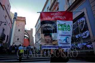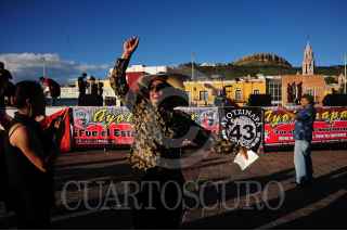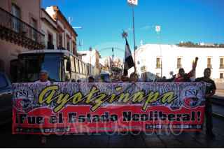 ZACATECAS, ZACATECAS, 26SEPTIEMBRE2015.-En conmemoración del primer aniversario de la desaparición de los 43 estudiantes normalistas en Iguala, Guerrero el pasado 26 de septiembre, diferentes organizaciones sociales se unieron y realizaron una marcha por diferentes calles de la ciudad para finalizar en la plaza Bicentenario con un mitin político. FOTO: ISABEL MATEOS /CUARTOSCURO.COM
