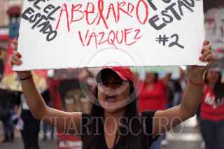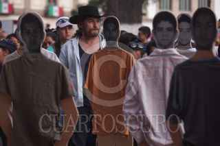 MORELIA, MICHOACÁN, 26SEPTIEMBRE2015.- Integrantes de Organizaciones civiles, estudiantes normalistas y ciudadanos participaron en la marcha de protesta a un año de la desaparición de los 43 estudiantes desaparecidos el 26 de septiembre del 2014. La marcha partió del monumento a Lázaro Cárdenas y terminó a las afueras de Palacio de Gobierno, en dónde realizaron mitín para finalizar la protesta. FOTO: ALAN ORTEGA /CUARTOSCURO.COM