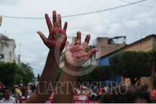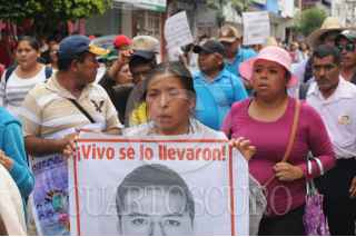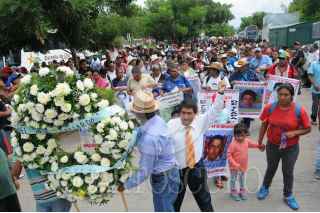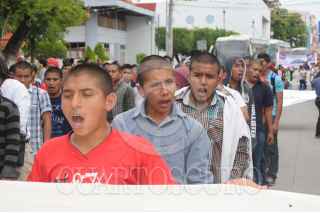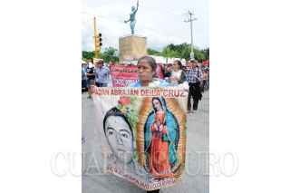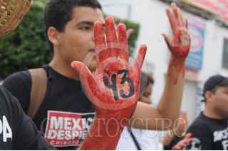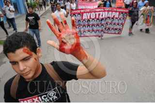 IGUALA, GUERRERO, 27SEPTIEMBRE2015.- Padres, alumnos de Ayotzinapa e integrantes de organizaciones sociales, marcharon en la Ciudad de Iguala hasta el lugar donde fueron atacados los normalistas de la normal rural Raúl Isidro Burgos y donde se edifico un monumento en la memoria de los jóvenes asesinados a manos de la policía municipal la noche del 26 de Septiembre de 2014. FOTO: SAÚL LÓPEZ /CUARTOSCURO.COM