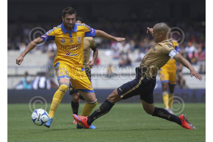 MÉXICO, D.F., 27SEPTIEMBRE2015.- Los jugadores de Pumas de la UNAM festejan el triunfo en casa sobre los Tigres de la UANL por 1-0, en partido correspondiente a la fecha 10 y con el cual se hacen del liderato del Apertura 2015. FOTO: ADOLFO VLADIMIR /CUARTOSCURO.COM