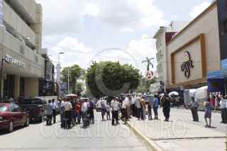 VILLAHERMOSA, TABASCO, 28SEPTIEMBRE2015.-Jubilados y pensionados del ISSET se manifestaron sobre la avenida Madero, en protesta de que su mensualidad del cobro no ha sido depositada en la sucursal bancaria BANORTE. Los inconformes no dan paso vehicular en los cuatro carriles de la arteria vial. FOTO: MARCO POLO GUZMAN HERNÁNDEZ /CUARTOSCURO.COM