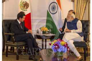 NUEVA YORK, E.U.A., 28SEPTIEMBRE2015.-El Presidente Enrique Peña Nieto se reunió hoy en esta ciudad con el Primer Ministro de la República de la India, Narendra Modi, en el marco de su participación en la 70ª Asamblea General de las Naciones Unidas (ONU), con quien dialogó acerca del interés mutuo por fortalecer la relación bilateral en materia económica y comercial. FOTO: PRESIDENCIA /CUARTOSCURO.COM