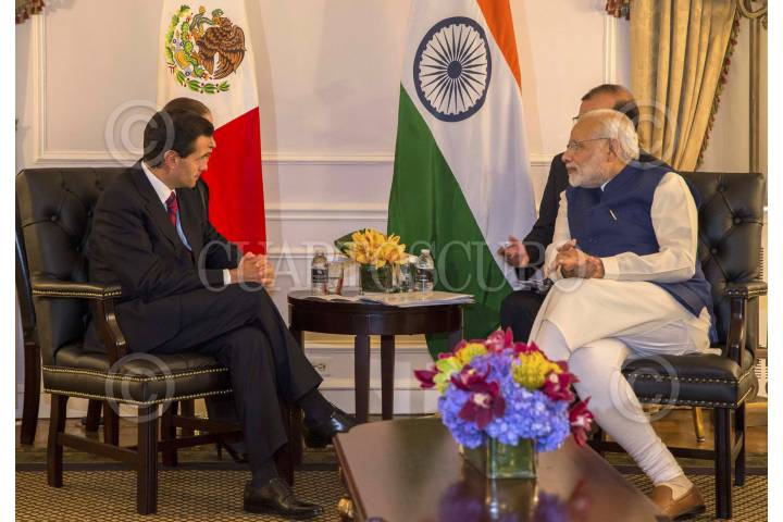 NUEVA YORK, E.U.A., 28SEPTIEMBRE2015.-El Presidente Enrique Peña Nieto se reunió hoy en esta ciudad con el Primer Ministro de la República de la India, Narendra Modi, en el marco de su participación en la 70ª Asamblea General de las Naciones Unidas (ONU), con quien dialogó acerca del interés mutuo por fortalecer la relación bilateral en materia económica y comercial. FOTO: PRESIDENCIA /CUARTOSCURO.COM