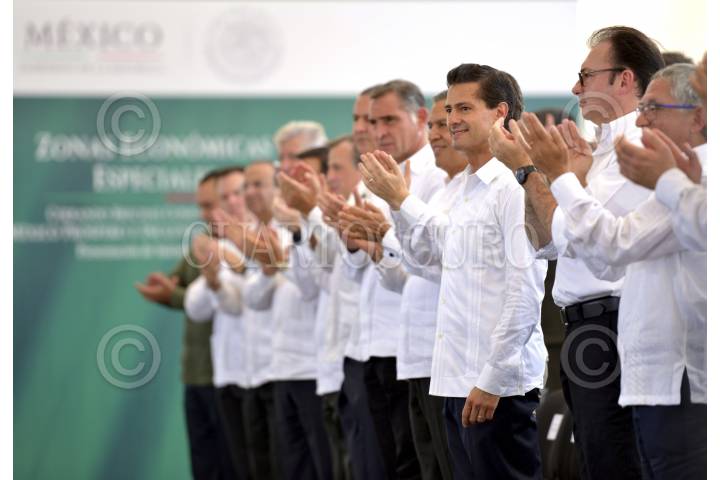 TAPACHULA, CHIAPAS, 29SEPTIEMBRE2015.- El Presidente de la República, Enrique Peña Nieto, encabezó la Presentación de la Iniciativa de Ley Federal de Zonas Económicas Especiales, donde señaló que una vez que ésta sea analizada, enriquecida, y eventualmente aprobada en el Congreso de la Unión, propondrá las primeras tres Zonas Económicas Especiales en el país: La del Corredor Industrial Inter-Oceánico, en el Istmo de Tehuantepec; La de los municipios de Michoacán y Guerrero que colindan con el Puerto de Lázaro Cárdenas; y Una Zona Económica Especial en Puerto Chiapas. FOTO: PRESIDENCIA /CUARTOSCURO.COM