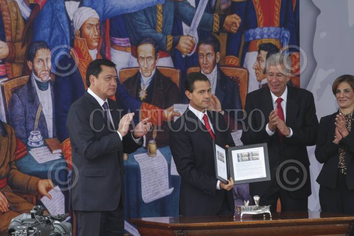 MÉXICO, D.F., 30SEPTIEMBRE2015.- El presidente Enrique Peña Nieto montó una guardia solemne de honor y encabezó la ceremonia de cancelación del timbre postal por la Conmemoración del CCL Aniversario del Natalicio del Generalísimo Don José María Morelos y Pavón. FOTO: MARÍA JOSÉ MARTÍNEZ /CUARTOSCURO.COM