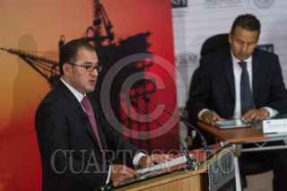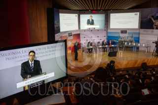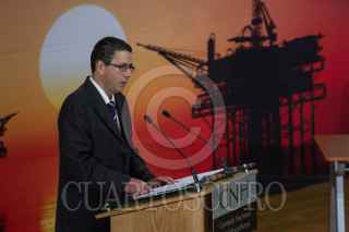 MÉXICO, D.F., 30SEPTIEMBRE2015.- Martín Álvarez, coordinador del Comité Licitatorio, durante el inicio de la Segunda Licitación de Ronda Uno en Nafinsa, donde la italiana ENI, y los consorcios PanAmerican-E&P Hidrocarburos y Fieldwood-Petrobal resultaron ganadores. FOTO: ISAAC ESQUIVEL /CUARTOSCURO.COM