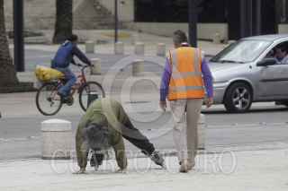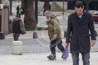 MÉXICO, D.F., 30SEPTIEMBRE2015.- Un hombre de edad mayor aprende a patinar en la explanada del Monumento a la Revolución. Los patines le fueron obsequiados, por lo que decidió que nunca es tarde para aprender a usar un buen obsequio. FOTO: JUAN PABLO ZAMORA /CUARTOSCURO.COM