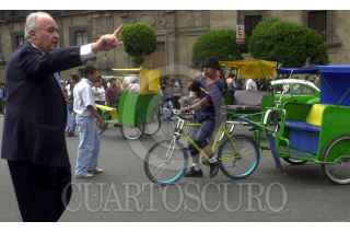 Francisco Ortiz Pinchetti, después de encontrar un medio de transporte a su gusto se retiró del Cologio de San Ildelfonso, donde abordo un taxi. FOTO:Christian Palma/CUARTOSCURO.COM