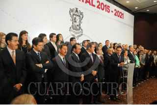 MORELIA, MICHOACÁN, 30SEPTIEMBRE2015.- Silvano Aureoles Conejo, gobernador electo de Michoacán, presentó ante los medios de comunicación a integrantes de su gabinete previo a la toma de protesta como gobernador constitucional ante la l congreso que se realizará mañana en el centro de convenciones de Morelia. FOTO: SAÚL LÓPEZ/CUARTOSCURO.COM