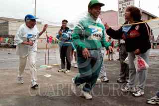 No importa la edad ni la lluvia, mujeres de la tercera edad participaron en la Carrera "No a las Adicciones" en el Deportivo Mixhuca. FOTO:Eunice Adorno/CUARTOSCURO.COM