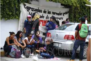 CHILPANCINGO, GUERRERO, 01OCTUBRE2015.- Miembros del Frente Único de Normales Públicas del Estado de Guerrero (FUNPEG) marcharon de la calle 3, donde mantienen tomada la oficina de la Secretaria de Finanzas de la colonia Burócratas, hacia la Subsecretaría de Administración Y Finanzas de la Secretaria de Educación de Guerrero (SEG) conocida como "Casa Blanca", ubicadas en la colonia Universal. Exigieron 708 plazas automáticas de profesores. FOTOS: JOSÉ I. HERNÁNDEZ /CUARTOSCURO.COM
