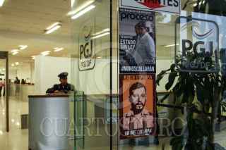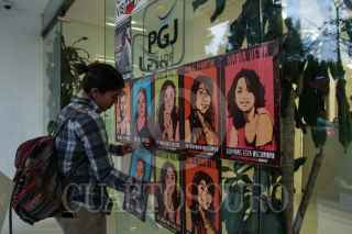 MÉXICO, D.F., 01OCTUBRE2015.- A 60 días del multihomicidio de la colonia Narvarte la Procuraduría General de Justicia del Distrito Federal (PGJDF), mantiene la teoría de un “ajuste de cuentas” de narcotraficantes con la víctima de nacionalidad colombiana Mile Virginia Martín. Cinco jóvenes acudieron a las instalaciones de dicha institución y pegaron en la infraestructura retratos de las victimas junto con la portada de la revista Proceso como forma de protesta ante la falta de respuesta y aclaración de los hechos de parte de las autoridades. FOTO: ISABEL MATEOS /CUARTOSCURO.COM