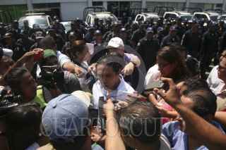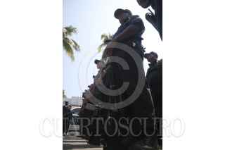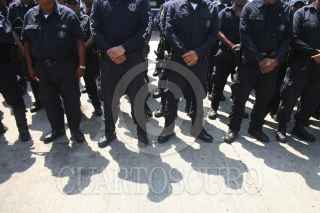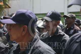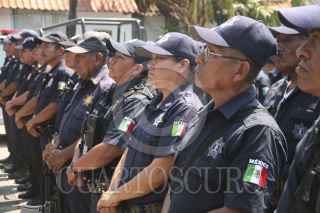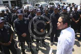 ACAPULCO, GUERRERO, 02OCTUBRE2015.- En su tercer día de labores al frente del Ayuntamiento, el presidente municipal, Evodio Velázquez Aguirre, nombró como encargado de despacho de la Secretaria de Seguridad Pública y Protección Civil a Francisco Sandoval Vázquez, quien se venía desempeñando como director de la Policía Preventiva Municipal. Asimismo, presentó como asesor en materia de seguridad pública al general retirado del Ejército Juan Heriberto Salinas Altés, ex secretario de Seguridad Pública estatal en el sexenio del ex gobernador René Juárez Cisneros y ex comandante de la 35 Zona Militar con sede en este puerto, además de dar a conocer el nombramiento del petista Israel González Nava cono titular de la recién creada Coordinación General de Movilidad y Transporte, que vendrá a sustituir las funciones de la Policía Vial. FOTO: BERNANDINO HERNÁNDEZ /CUARTOSCURO.COM