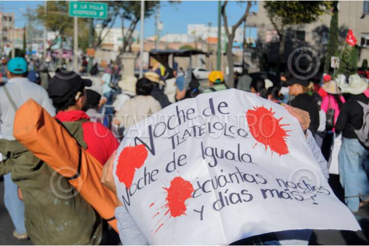 MÉXICO, D.F., 02OCTUBRE2015.- Padres de los normalistas de Ayotzinapa desaparecidos en el municipio de Iguala, marcharon por la avenida Paseo de la Reforma hasta llegar a la plaza de las tres culturas donde realizaron un mitin para conmemorar el 47 aniversario del asesinato de estudiantes en Tlatelolco. FOTO: SAÚL LÓPEZ /CUARTOSCURO.COM