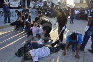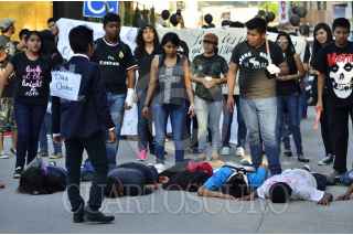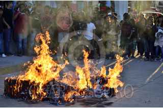 TLAPA, GUERRERO, 02OCTUBRE2015.- Estudiantes de la preparatoria popular número 11 realizaron una marcha para conmemorar el 47 aniversario de la matanza de estudiantes en Tlatelolco, durante la marcha quemaron dos ataúdes con los nombres de Gustavo Díaz Ordaz y Luis Echeverria. FOTO: SALVADOR CISNEROS /CUARTOSCURO.COM
