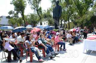 MÉXICO, D.F., 03OCTUBRE2015.- Martí Batres Guadarrma, Presidente del CEN de Morena, y la diputada Alicia Barrientos encabezaron la toma de protesta de los comités de base, la acción se realizo en el monumento conmemorativo al general Lázaro Cárdenas, ubicado en Dr. Bernard y Eje Central, en la colonia doctores. FOTO: GALO CAÑAS /CUARTOSCURO.COM