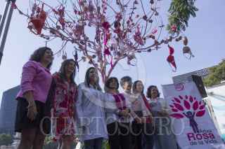 MÉXICO, D.F., 04OCTUBRE2015.- Como parte de las actividades de la lucha contra el cáncer de mama, en un costado del ángel de la Independencia se coloco un árbol rosa de la vida el cual simboliza esta lucha y estará hay los próximos domingos para que las mujeres coloquen sus brasieres en señal de apoyo. FOTO: ENRIQUE ORDÓÑEZ /CUARTOSCURO.COM