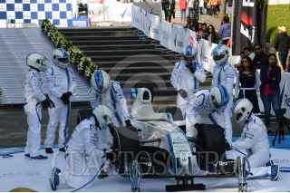 MÉXICO, D.F., 04OCTUBRE2015.- La marca de desodorantes Rexona en colaboración con el equipo de Fórmula 1, Williams Martini Racings, realizaron una demostración de las maniobras que se ejecutan en los pits durante una carrera oficial e invitaron a los capitalinos a vivir esta experiencia. El equipo oficial de mecánicos de Williams Martini Racings fueron quienes realizaron la muestra, al igual que asesoraron a los concursantes. FOTO: GALO CAÑAS /CUARTOSCURO.COM