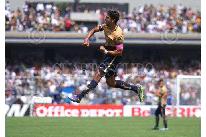 MÉXICO, D.F., 04OCTUBRE2015.- Carlos Fierro (7) y Luis Fuentes (5), disputan el balón en el juego en el que los Pumas de la UNAM ganaron a las Chivas del Guadalajara un gol por cero, en partido de la jornada 12 del Torneo de Fútbol Apertura 2015. FOTO: ADOLFO VLADIMIR /CUARTOSCURO.COM