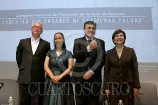 MÉXICO, D.F., 05OCTUBRE2015.- Luis Raúl González Pérez, presidente de la CNDH; la senadora Angélica de la Peña y el conductor del canal del Congreso Javier Solórzano, presentaron la Campaña Nacional de Prevención de la Trata de Personas “Libertad sin engaños ni promesas falsas”, que tuvo como sede el Museo de Memoria y Tolerancia. Mediante dicha campaña, se busca visibilizar la realidad y gravedad de este delito, generar conciencia y contribuir a su prevención. En especial, pretende advertir a las adolescentes y mujeres sobre las formas de captación que utilizan los tratantes, entre ellas la seducción, invitándolas a informarse y a cuidarse. Se hará hincapié, también, en el papel que juega la demanda de servicios y productos realizados bajo explotación. FOTO: CNDH /CUARTOSCURO.COM