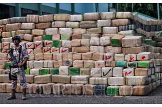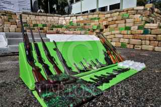 CULIACÁN, SINALOA, 05OCTUBRE2015.- En la explanada de las instalaciones de la Novena Zona Militar, fue presentado el aseguramiento de aproximadamente 24 toneladas de marihuana, 10 kilos de droga conocida como ¨cristal¨, 13 armas largas y 7 cortas, entre otros artículos. El evento fue encabezado por el gobernador del estado Mario López Valdez. FOTO: CUARTOSCURO.COM